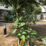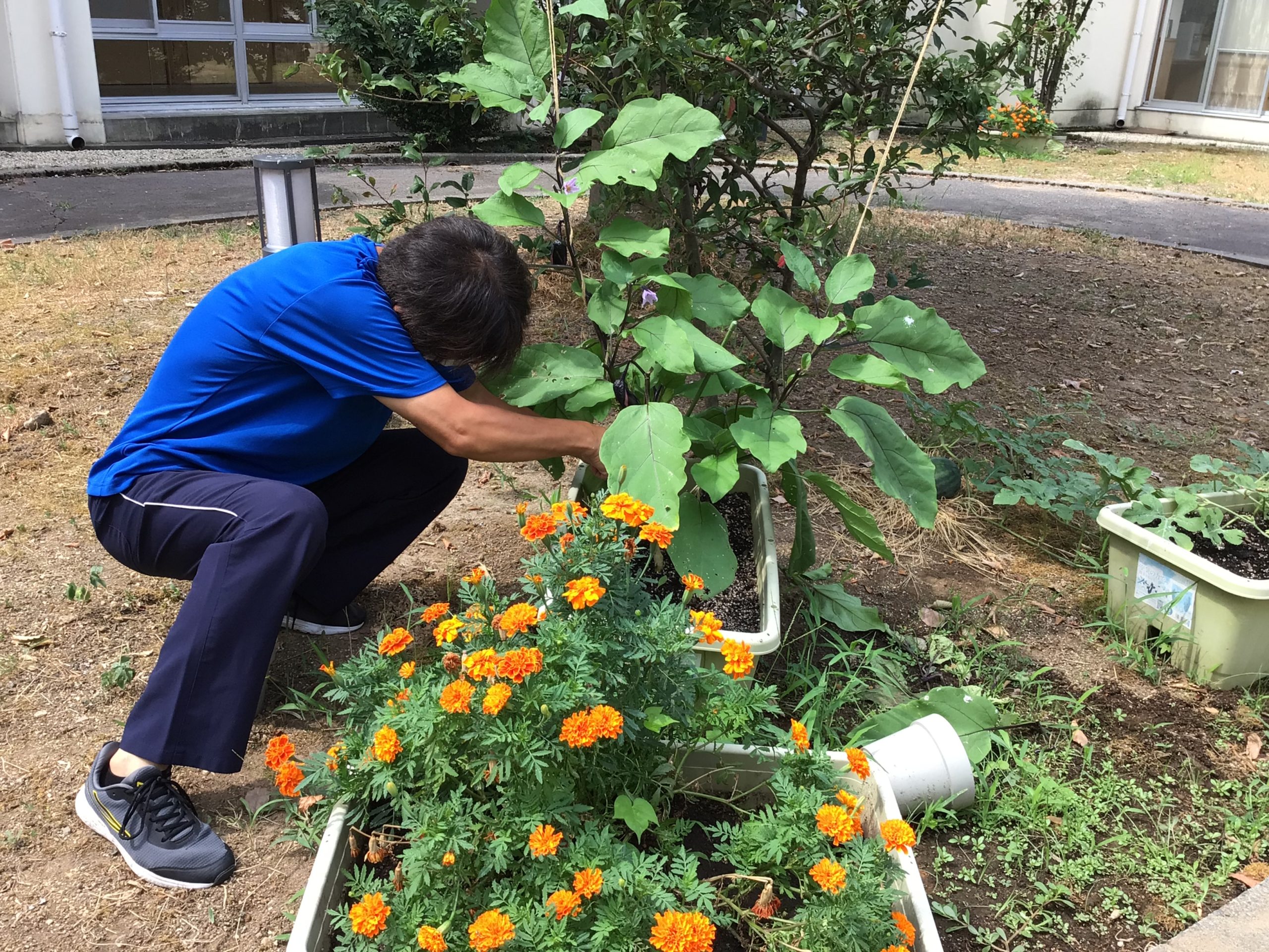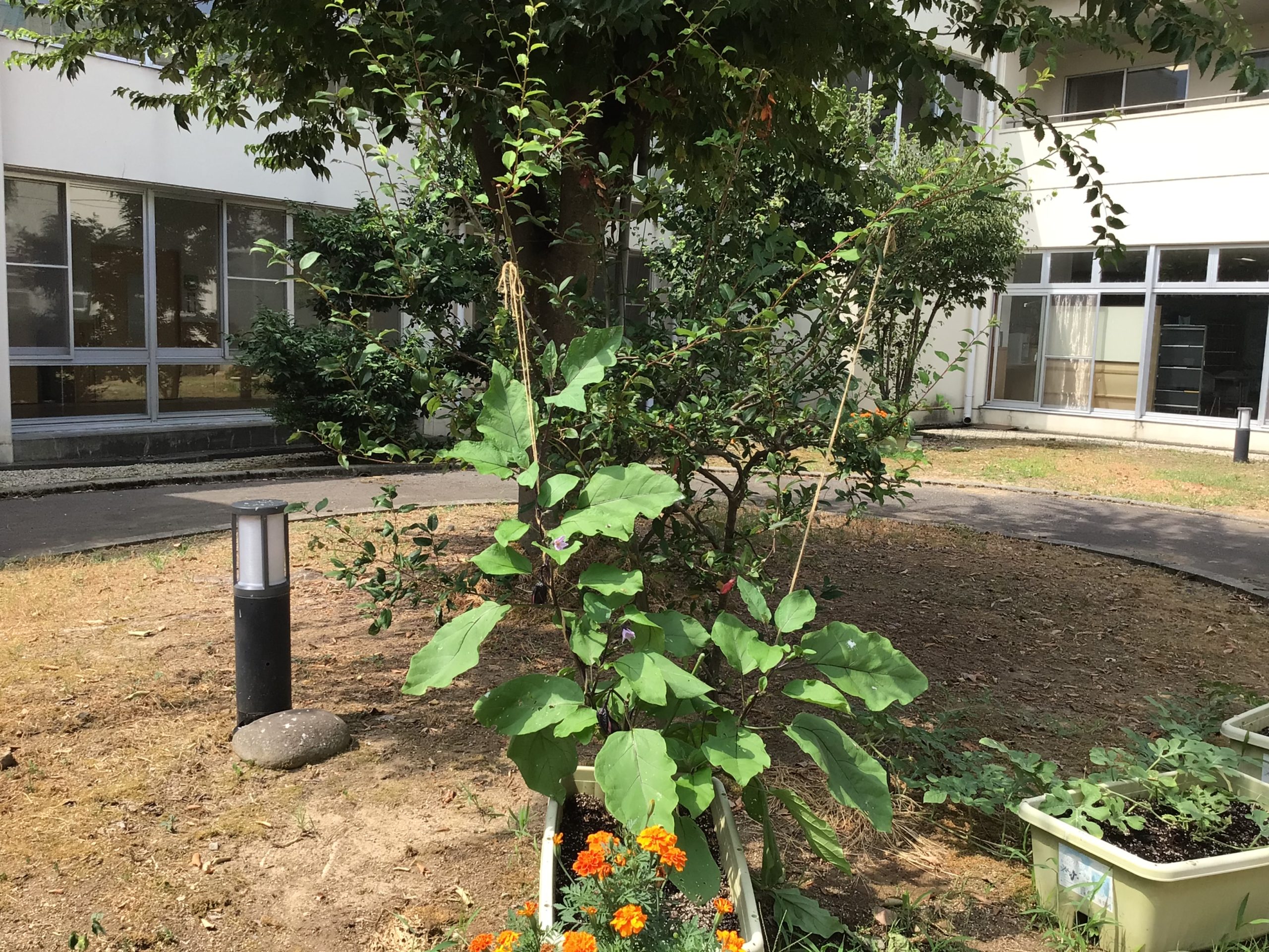 今年の夏は、ある職員の発案で畑で野菜作りが行われました。